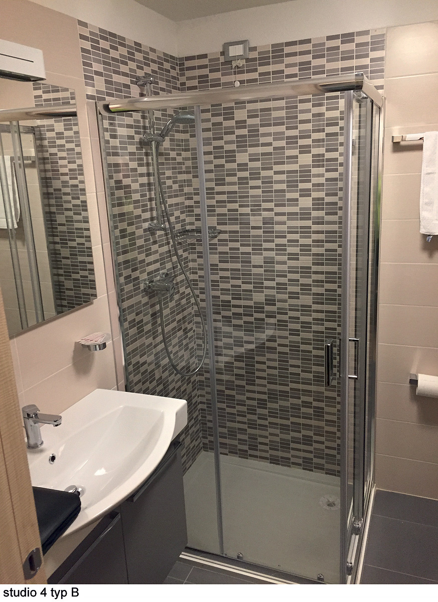 30 m² - obývacia izba s oddeleným kuchynským kútom a manželskou posteľou alebo skriňovou manželskou posteľou, vstupná miestnosť s poschodovou posteľou, sociálne zariadenie, balkón alebo terasa; studia 4 sud s výhľadom do údolia