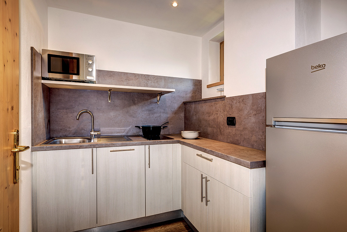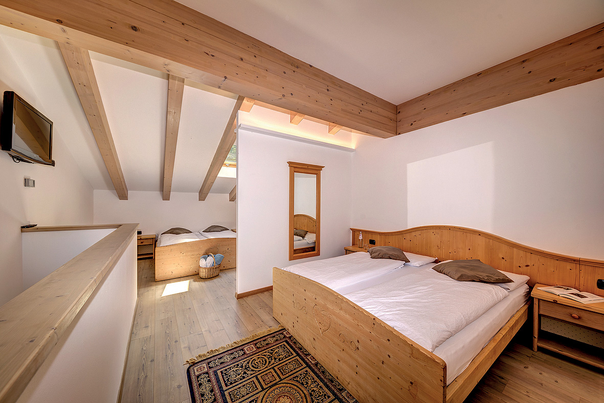 30 m² - obývacia izba s kuchynským kútom, čiastočne oddelenou spálňou s manželskou posteľou a prípane ďalším samostatným lôžkom či rozkladacím kreslom, sociálne zariadenie; apartmány sú situované v podkroví