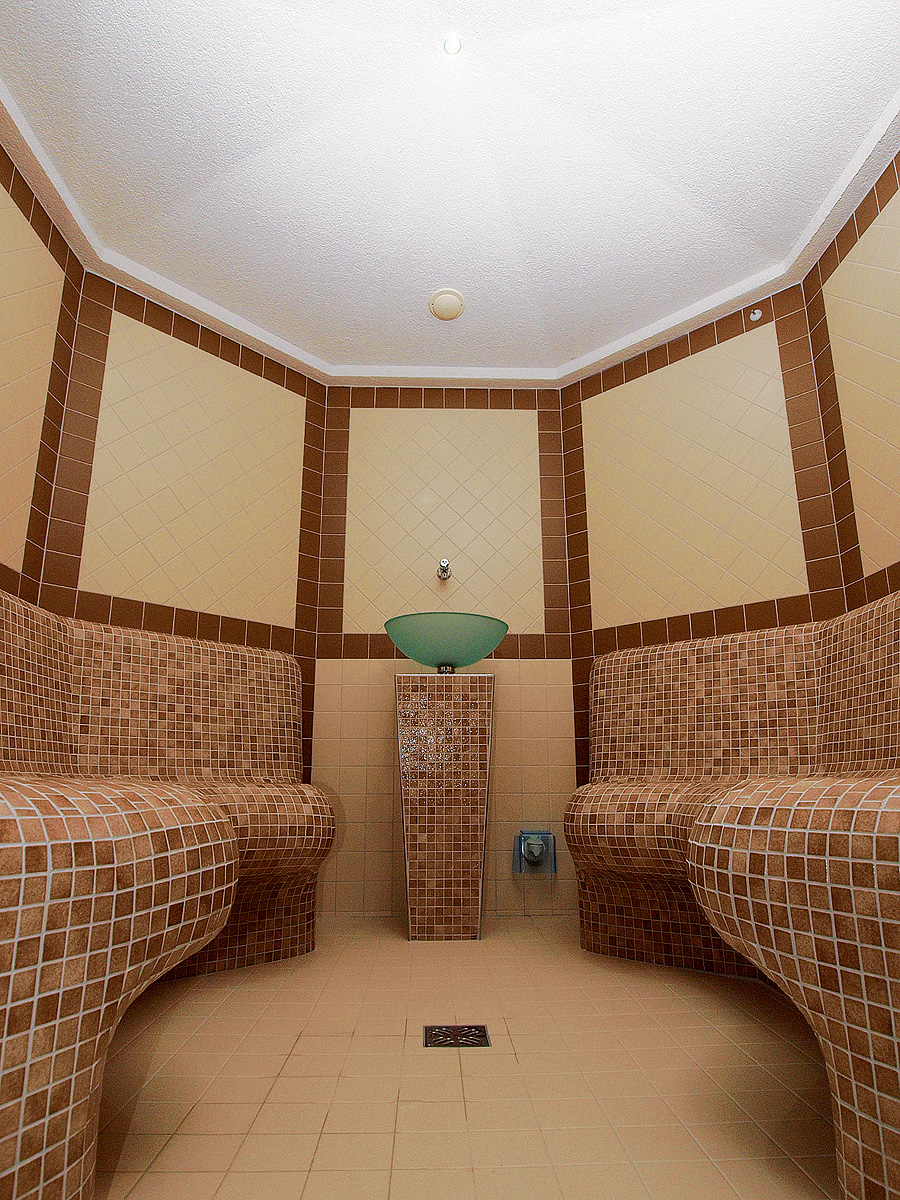 špeciálna parná vaňa#, sauna#, vonkajšia sauna#, biosauna#, para#, atypický ľadový kúpeľ#, multifunkčná sprcha#, relaxačný kútik# s ležadlami, masáže*, ponuka Hotelu Nele - bazén 37 m² (do 16.30 hod. a od 18.30 hod.); služby označené # nemôžu využívať deti do 10 rokov
