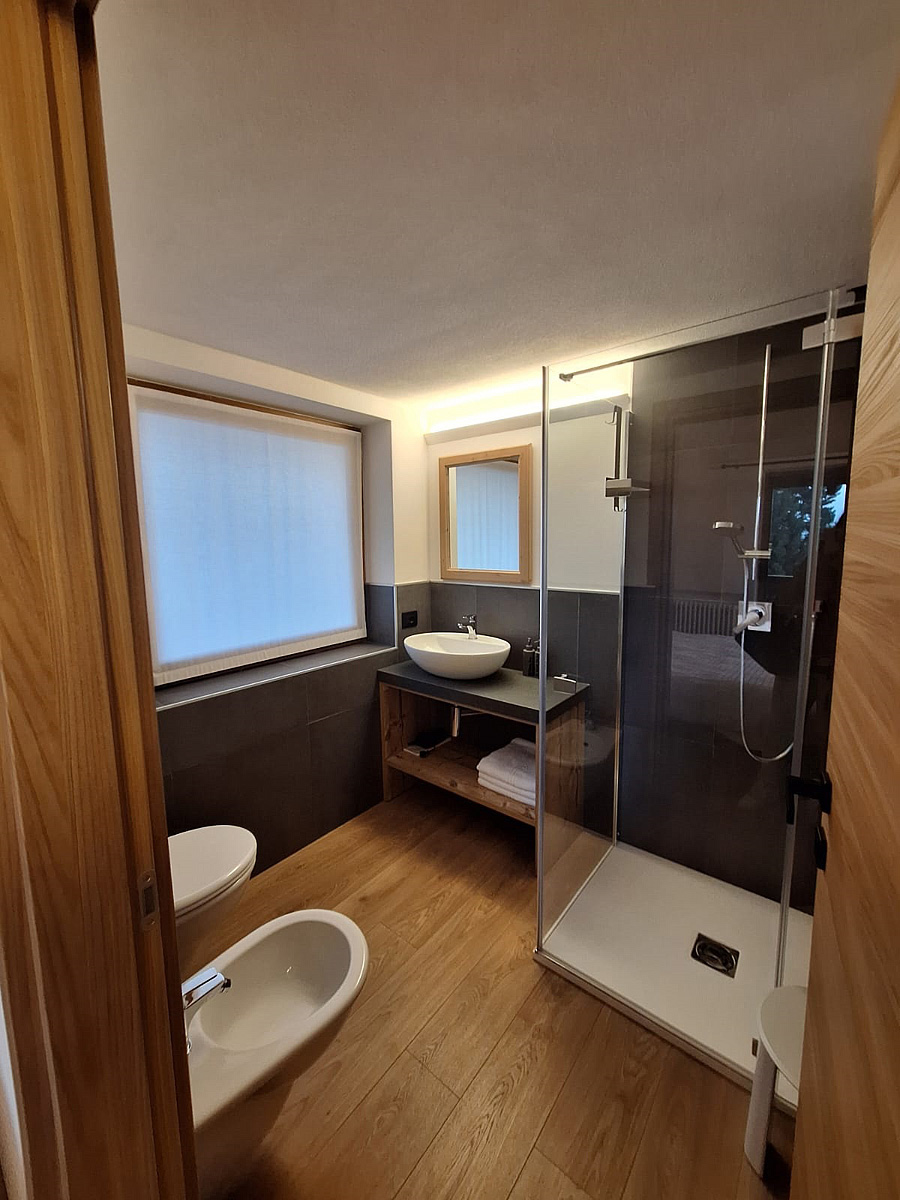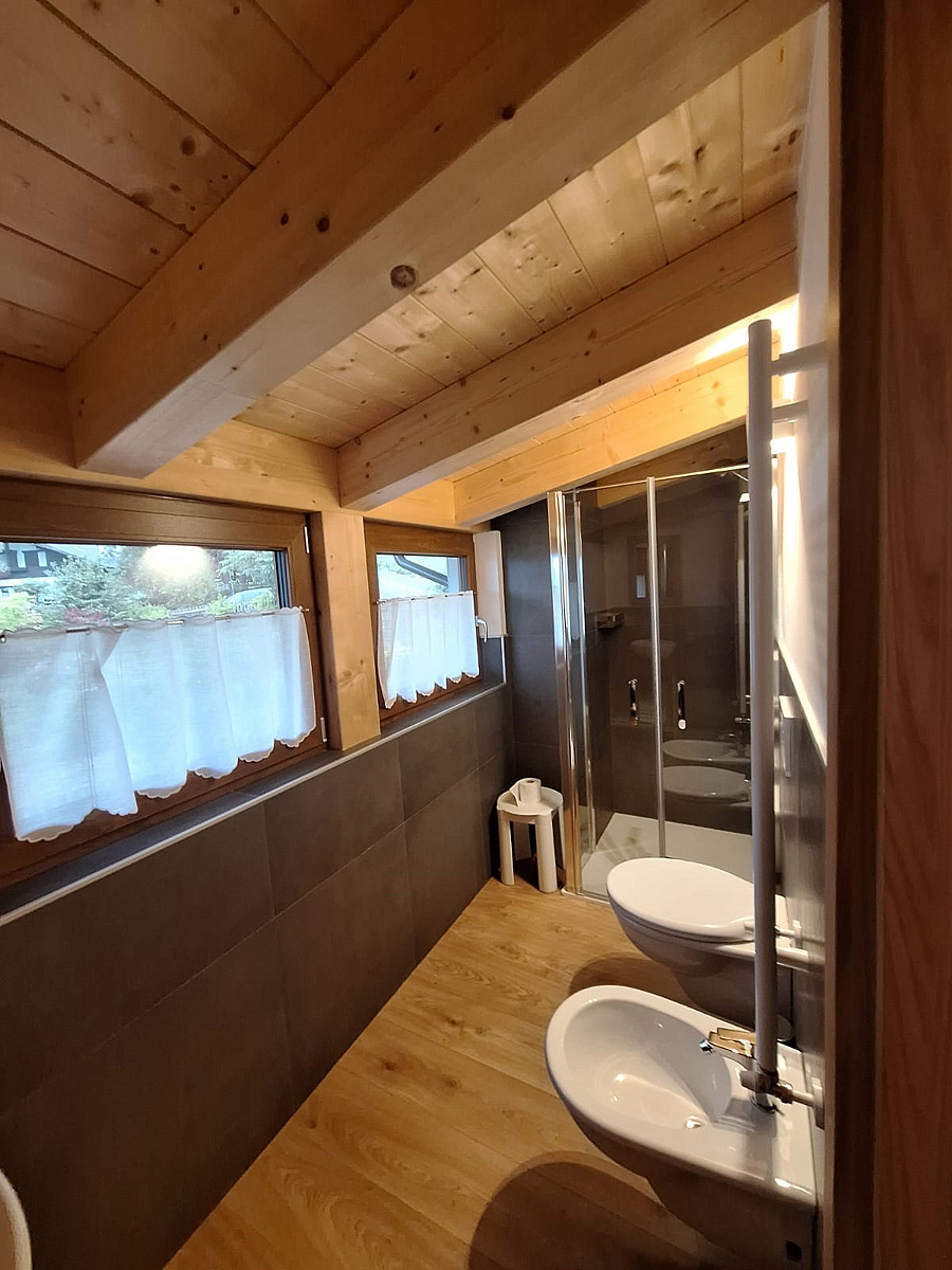 Chalet 12 - 2 spálne s manželskou posteľou, 2 spálne s manželskou posteľou a 1 samostatným lôžkom, obývacia izba s rozkladacím gaučom pre 2 osoby, jedáleň, samostatná kuchynka, 4x sociálne zariadenie so sprchou (vstup zo spálne), 4x balkón