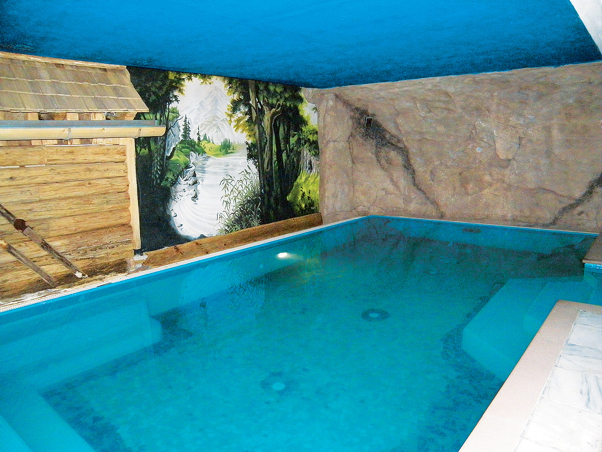 bazén 9 x 4 m s protiprúdom a vírivkou až pre 4 osoby#, sauna#, para#, atypická ľadový kúpeľ#, ľadová hmla#, menšia posilňovňa, masáže*#; služby označené # sú k dispozícii vo vymedzenom čase