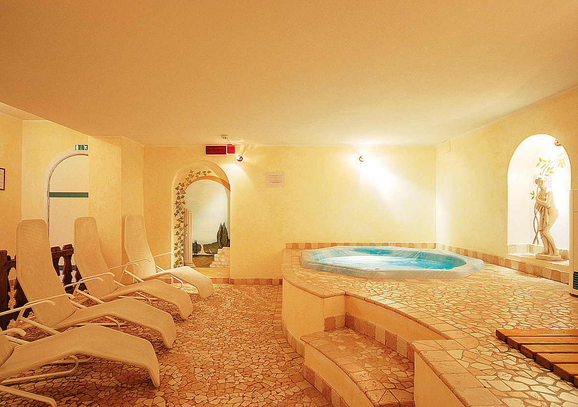 vírivka*# až pre 8 osôb, sauna*#, para*#, termárium*, 2x multifunkčná sprcha*#, relaxačný kútik*# s lehátkami; služby označené # môžu využívať deti od 6 do 12 rokov len v sprievode dospelej osoby
