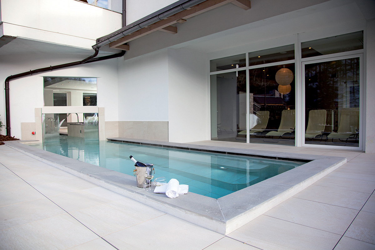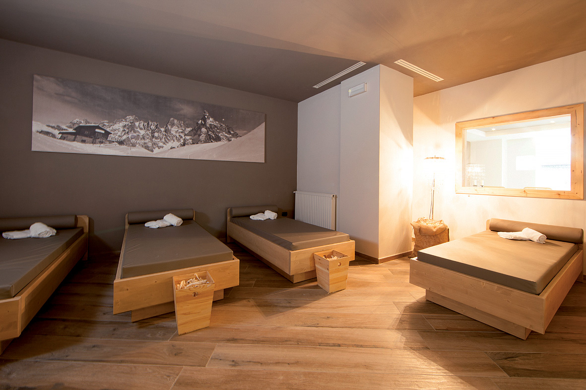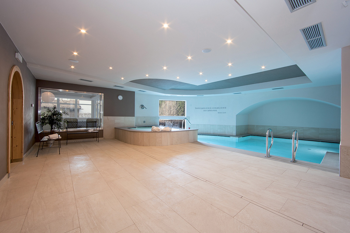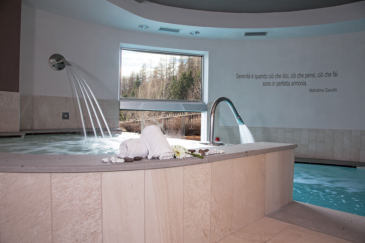 bazén atypického tvaru s detským bazénikom, vonkajší vyhrievaný bazén, vírivka až pre 8 osôb, vonkajšia vírivka až pre 8 osôb, sauna, bio sauna, aromatická para, ľadový kúpeľ, 2x multifunkčná sprcha, vertikálne solárium*, relaxačný kútik s ležadlami, masáže*, posilňovňa, biliard*, stolný tenis, stolný futbal