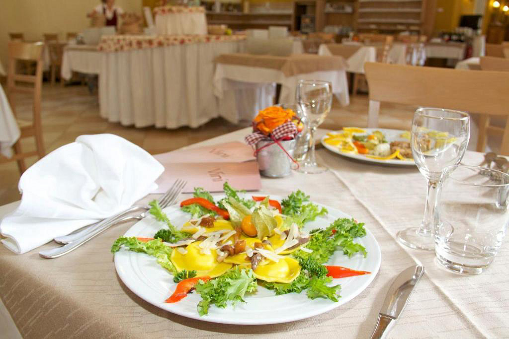 servírované menu s výberom z 2 až 3 teplých predjedál, 2 až 3 hlavných jedál s prílohou, studené predjedlo a dezerty formou bufetu, šalátový bufet, nápoje za poplatok