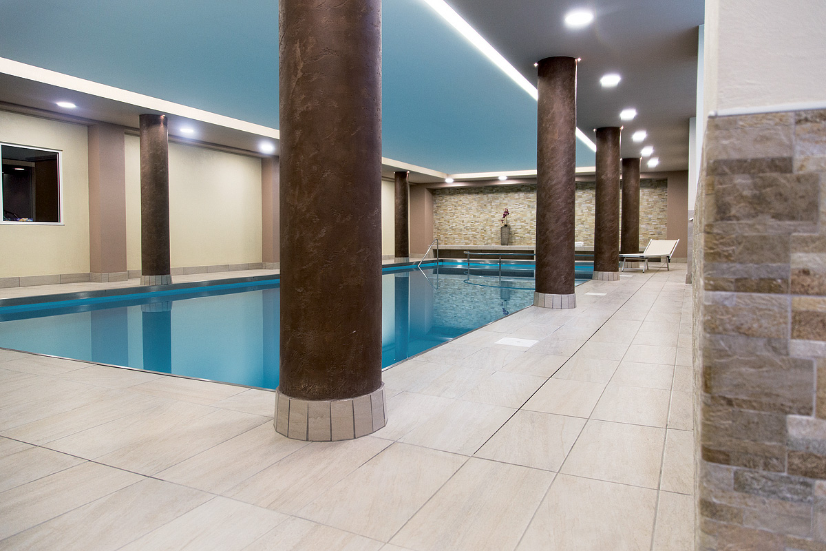 bazén 15 x 6 m s ležadlami, vírivka# až pre 6 osôb, 2x sauna#, para#, relaxačný kútik# s ležadlami, posilňovňa#, biliard*, stolný tenis, stolný futbal*; služby označené# môžu využívať len osoby od 16 rokov