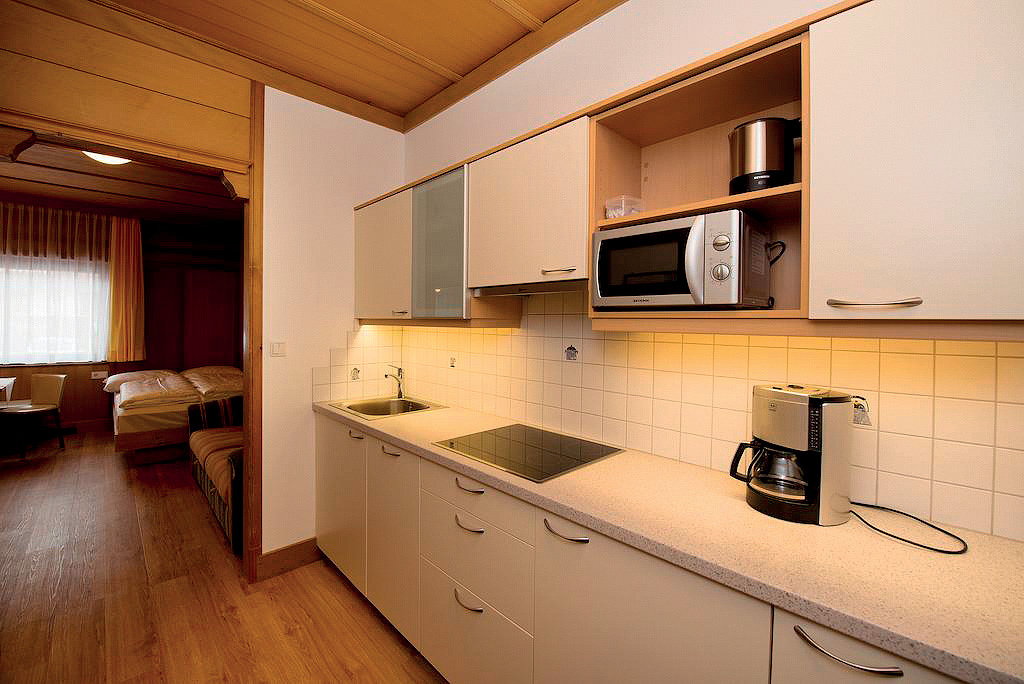 vybavenosť apartmánov - TV sat. (u quadrilo 6+2 Family Suite Deluxe 3x), telefón, trezor, umývačka riadu, mikrovlnná rúra, kávovar, toustovač (na požiadanie), wi-fi pripojenie k internetu, župany* do wellness