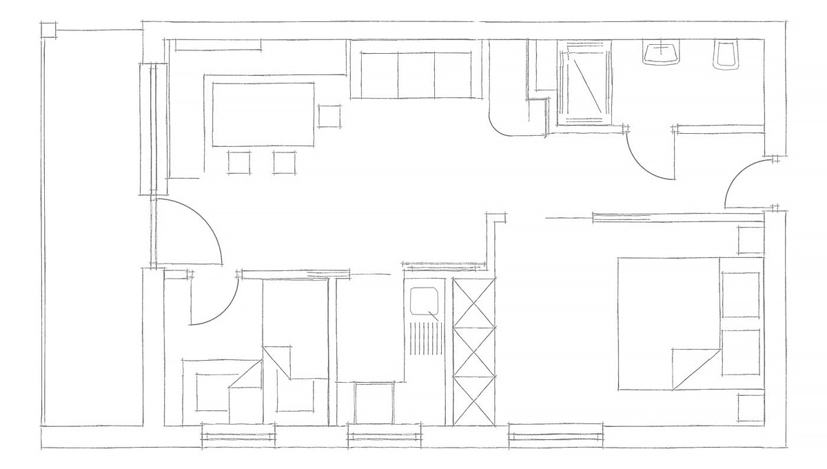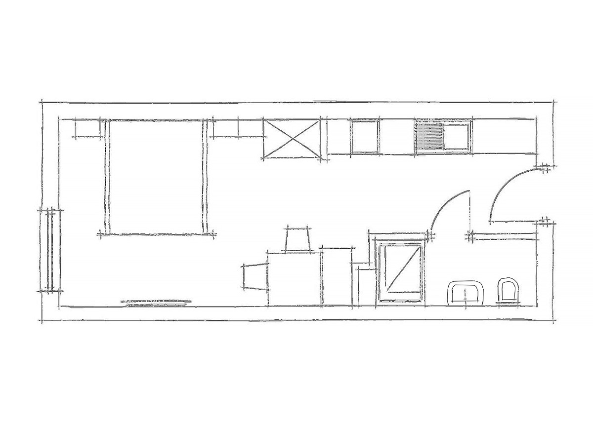 mono 2 - 23 m² - obývacia izba s kuchynským kútom a manželskou posteľou, sociálne zariadenie
