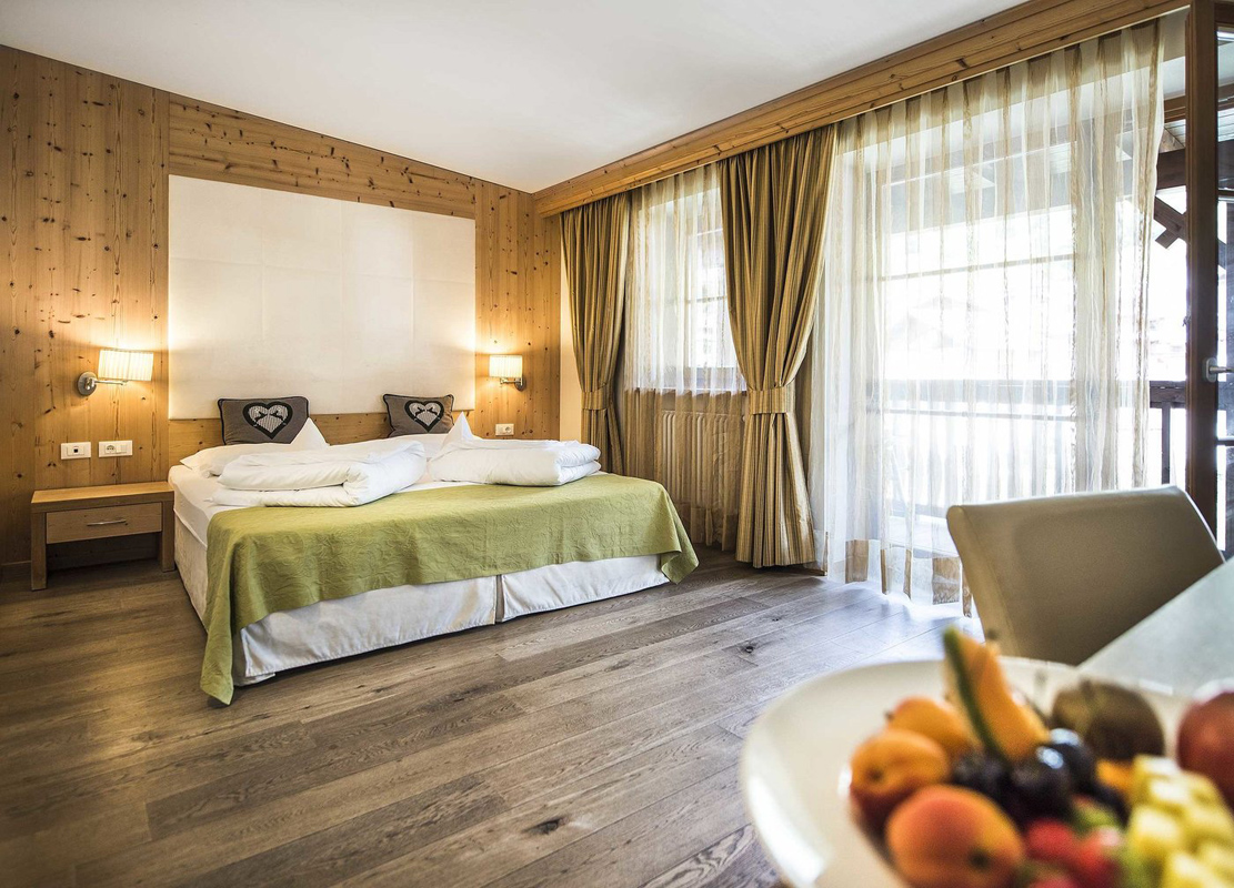 Junior Suite Dolomiten 2/3/4 - 36 m² - izba s manželskou posteľou a rozkladacím gaučom pre 2 osoby, sociálne zariadenie so sprchou, samostatné WC, balkón