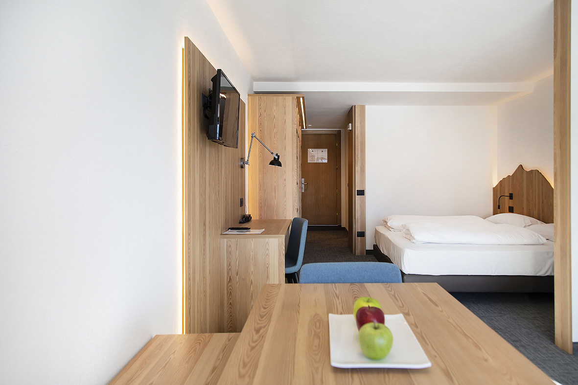 Standard 3/3+1 - 16 až 18 m² - izba s manželskou posteľou či 2 samostatnými lôžkami a prípadne rozkladacím gaučom pre 1 dospelú osobu a 1 dieťa do nedovŕšených 12 rokov, sociálne zariadenie