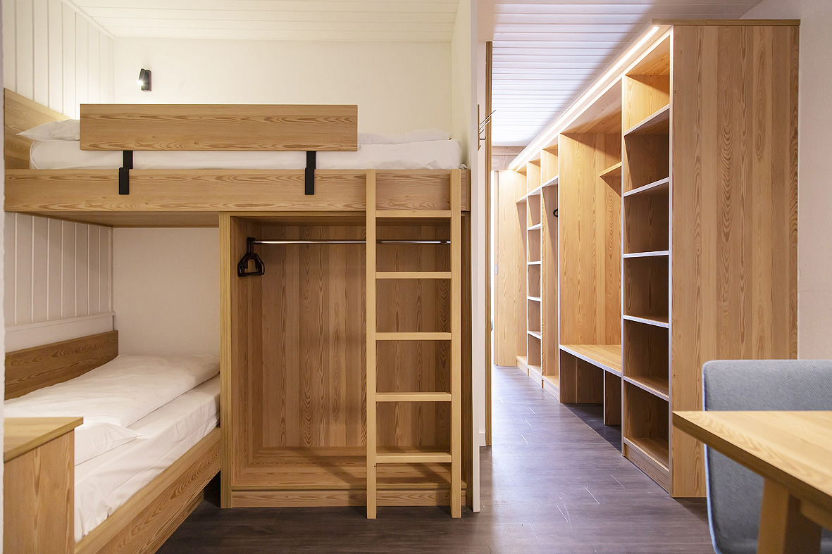 Family 3/4 - 28 až 32 m² - priestrannejšia izba s manželskou posteľou, obývacia izba s mimoúrovňovou poschodovou posteľou, sociálne zariadenie so sprchou či vaňou