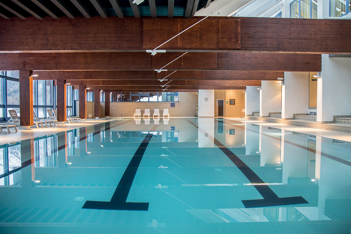 šport a relaxácia - bazén 25 x 10 m s lehátkami (povinná kúpacia čapica, deti do 15 rokov v sprievode dospelej osoby), vírivka#, sauna#, para#, relaxačný kútik# s lehátkami, Kneippov chodník#, masáže#*, ľadopád, posilňovňa; nutná rezervácia do wellness zóny a posilňovne - max. na 2 hodiny; služby označené # nemôžu využívať deti do 17 rokov
